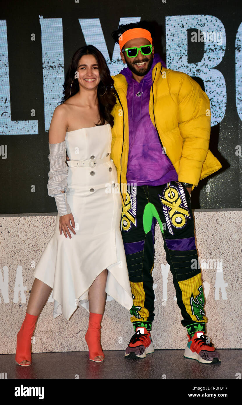 January 9 2019 Mumbai India Actress Alia Bhatt With Actor Ranveer Singh Are Seen During The Upcoming Trailer Launch Of The Film Gully Boy At Hotel Novotel Juhu In Mumbai
